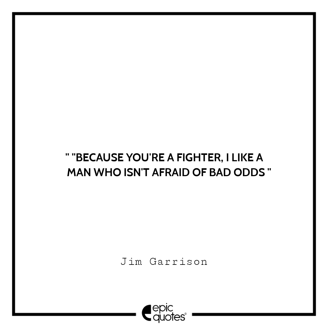 14 . Because you’re a fighter. I like a man who isn’t afraid of bad odds. –Jim Garrison