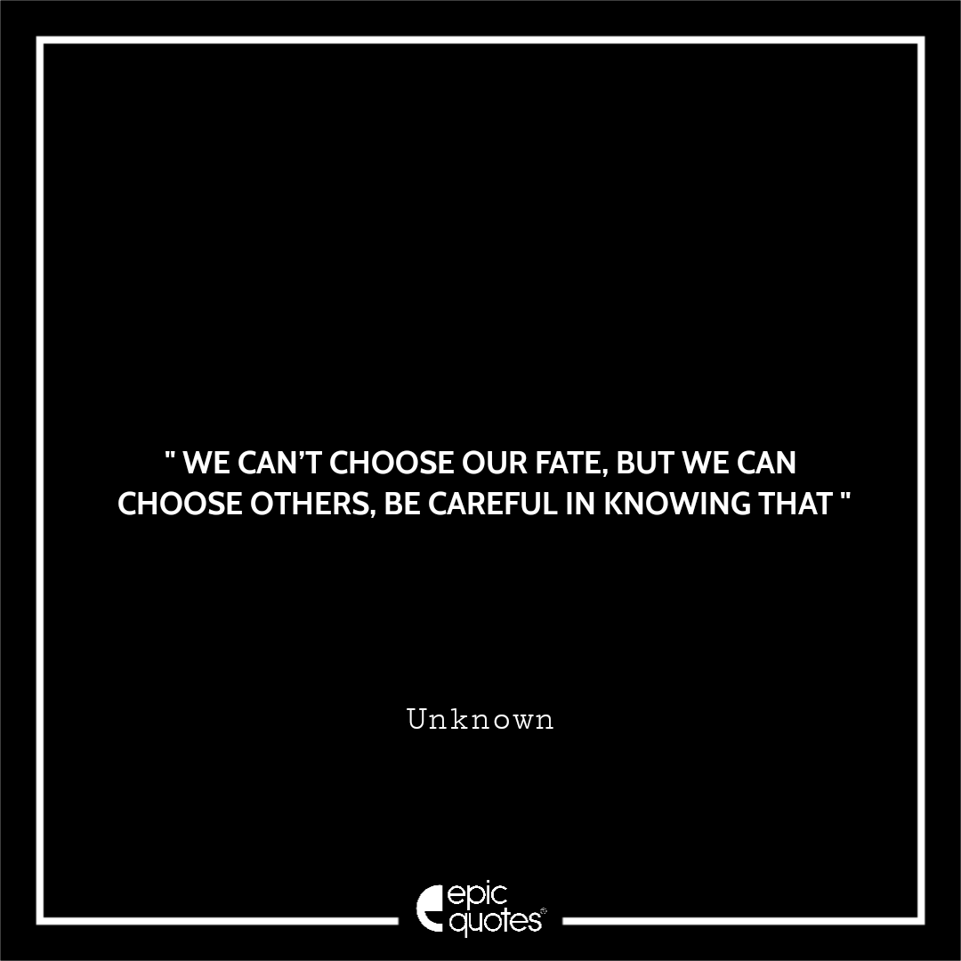 12. We can’t choose our fate, but we can choose others. Be careful in knowing that