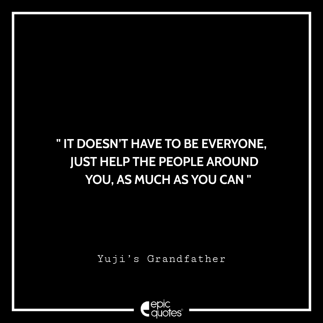 1 . It doesn’t have to be everyone, just help the people around you, as much as you can. -Yuji’s Grandfather