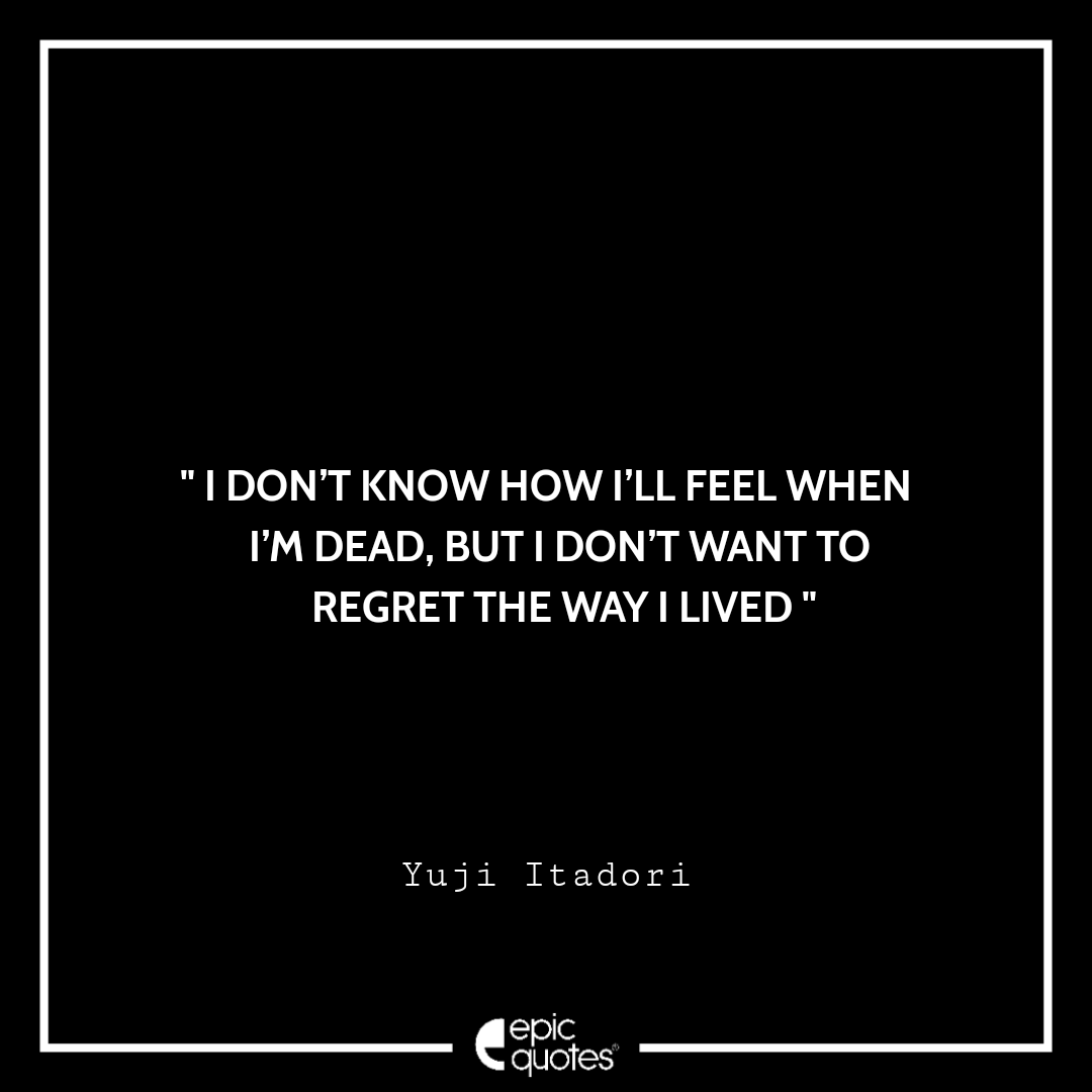 4. I don’t know how I’ll feel when I’m dead, But I don’t want to regret the way I lived. -Yuji Itadori