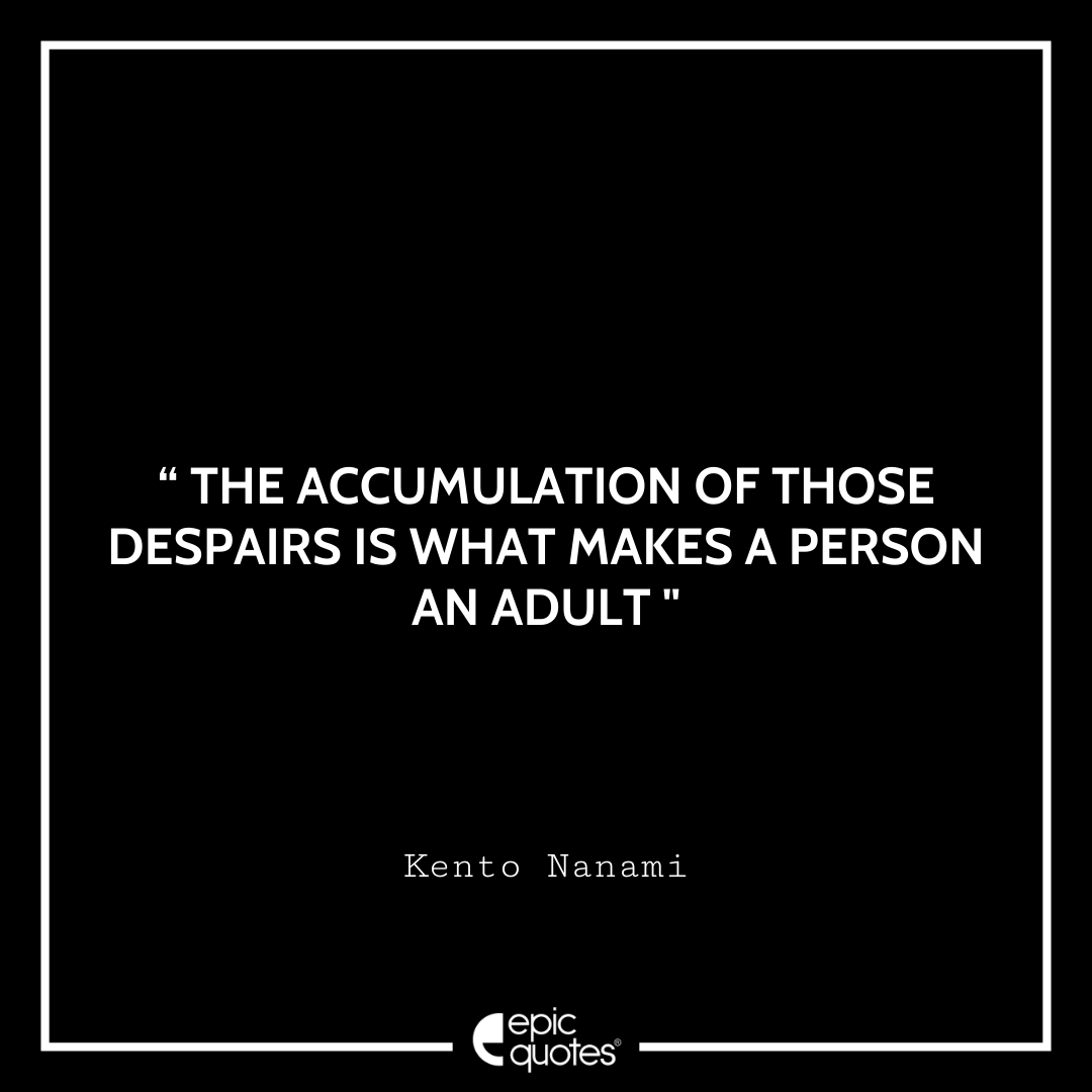 23 . The accumulation of those despairs is what makes a person an adult. -Kento Nanami