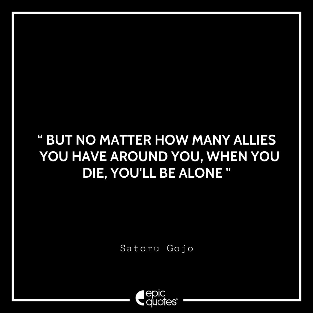 20. But no matter how many allies you have around you, when you die, you’ll be alone. -Satoru Gojo