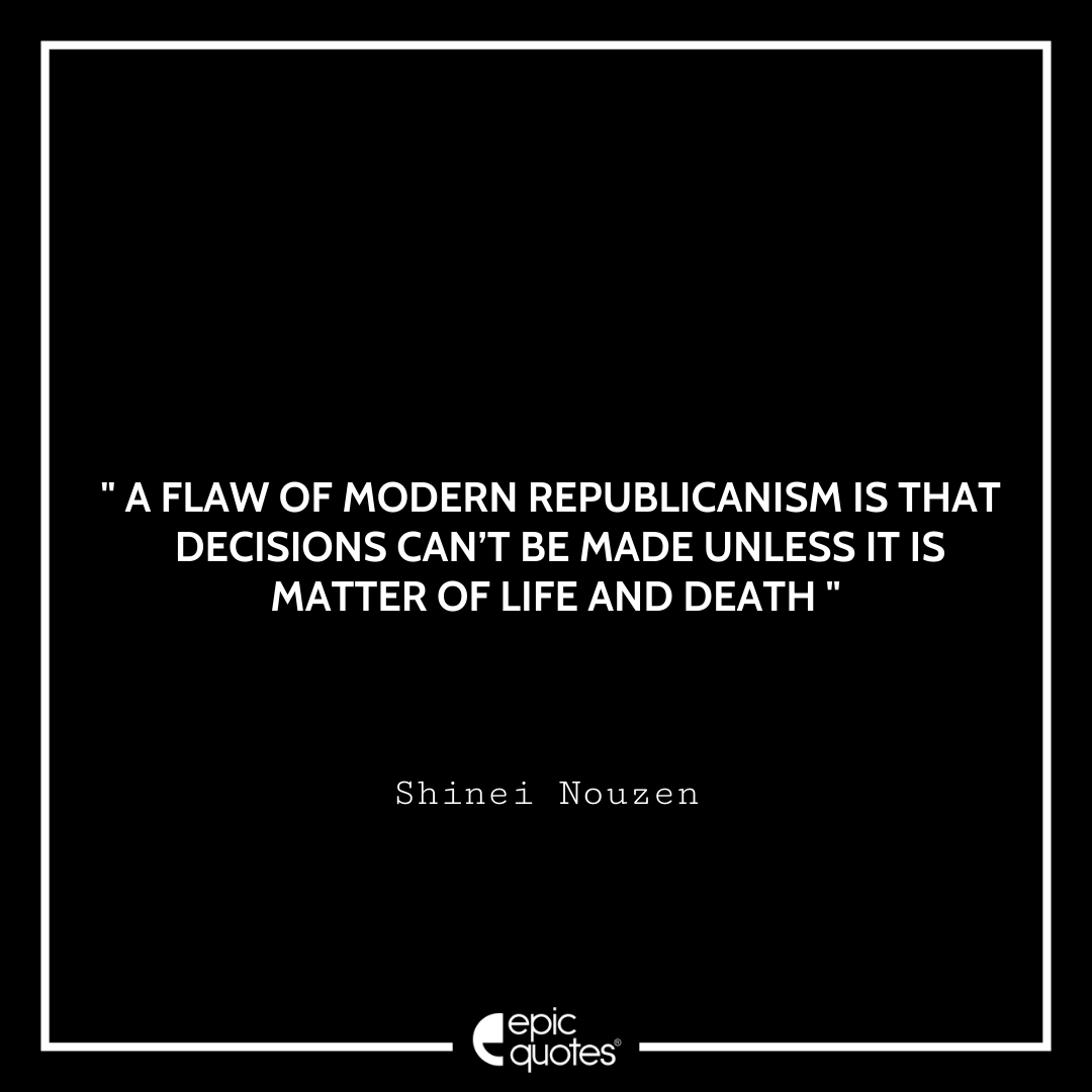 3. A flaw of modern Republicanism is that decisions can’t be made unless it is a matter of life and death. -Shinei Nouzen