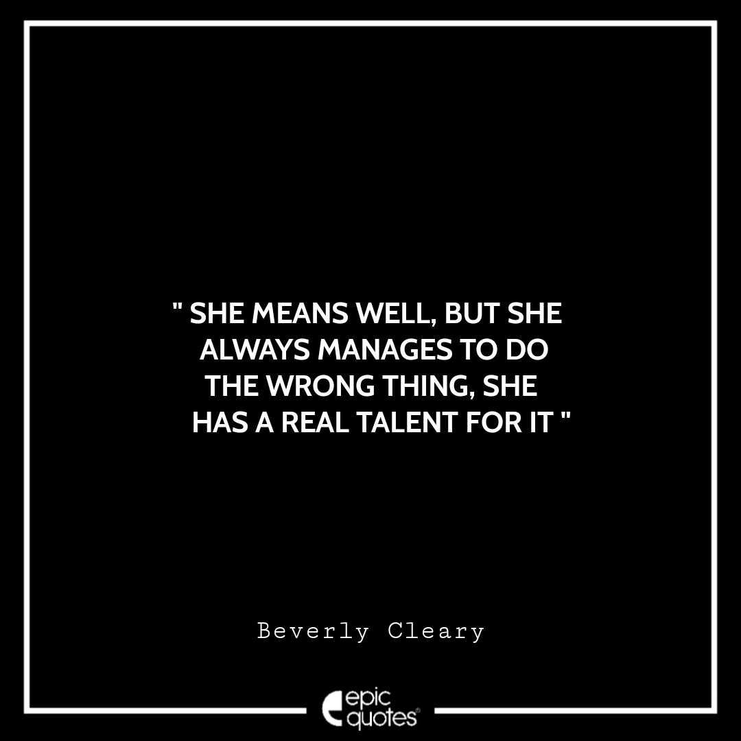 4 She means well, but she always manages to do the wrong thing, She has a real talent for it. -Beverly Cleary