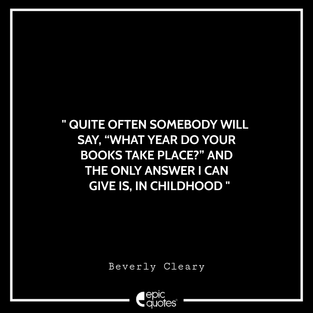5 Quite often somebody will say, “What year do your books take place?” and the only answer I can give is, in childhood. -Beverly Cleary