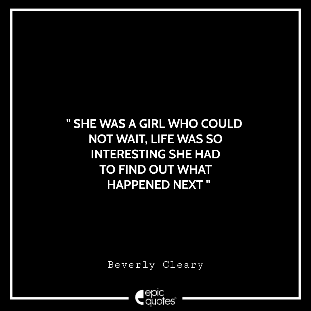9 She was a girl who could not wait, Life was so interesting she had to find out what happened next. -Beverly Cleary