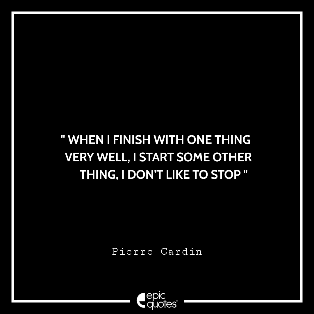 4 When I finish with one thing very well, I start some other thing, I don’t like to stop. -Pierre Cardin