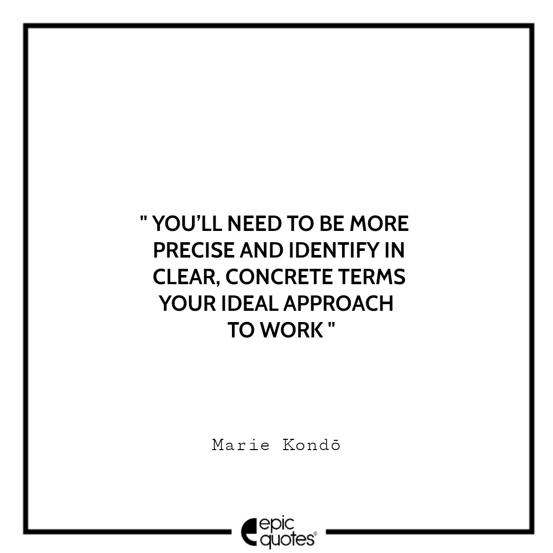 3 You’ll need to be more precise and identify in clear, concrete terms your ideal approach to work. -Marie Kondō