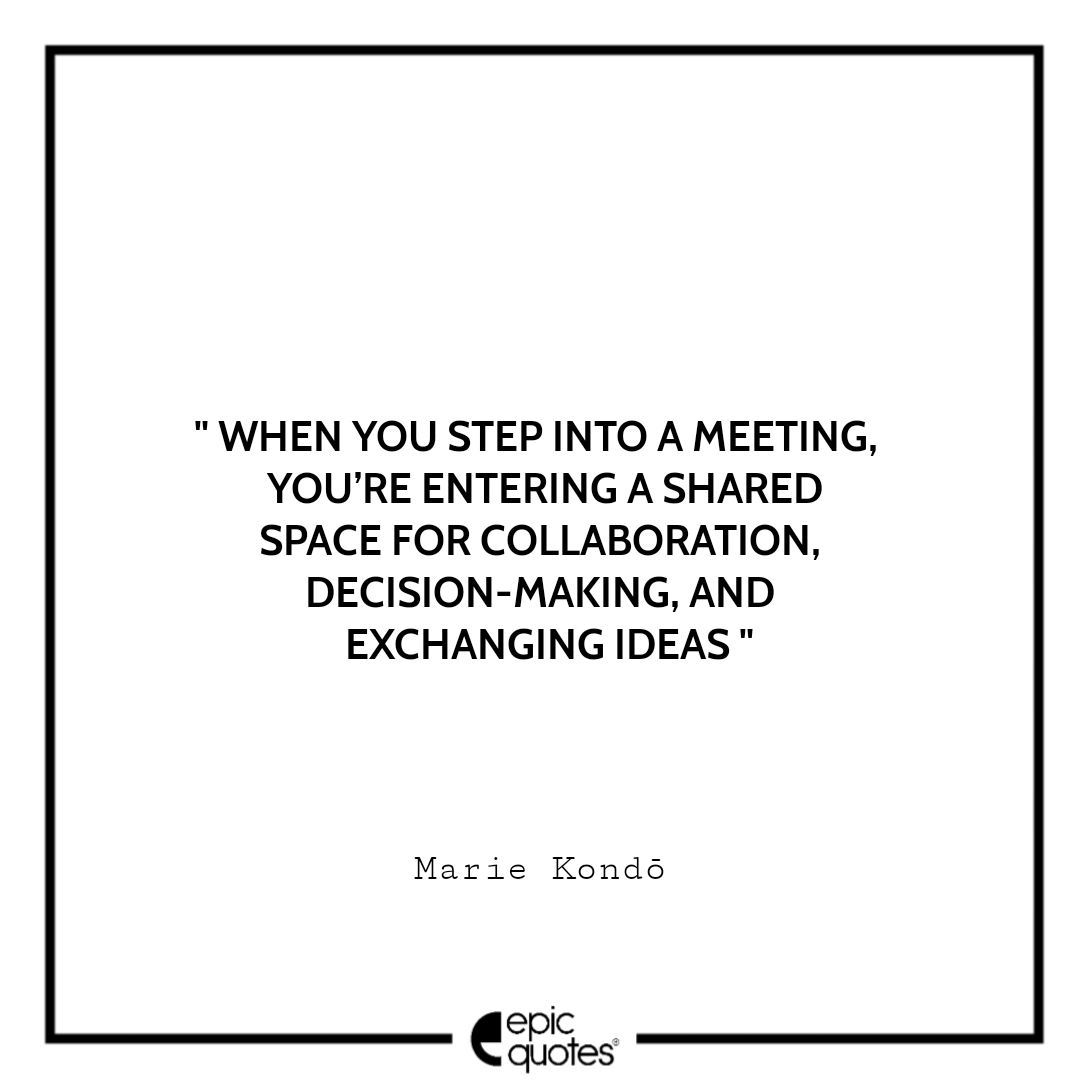 9 When you step into a meeting, you’re entering a shared space for collaboration, decision-making, and exchanging ideas. -Marie Kondō