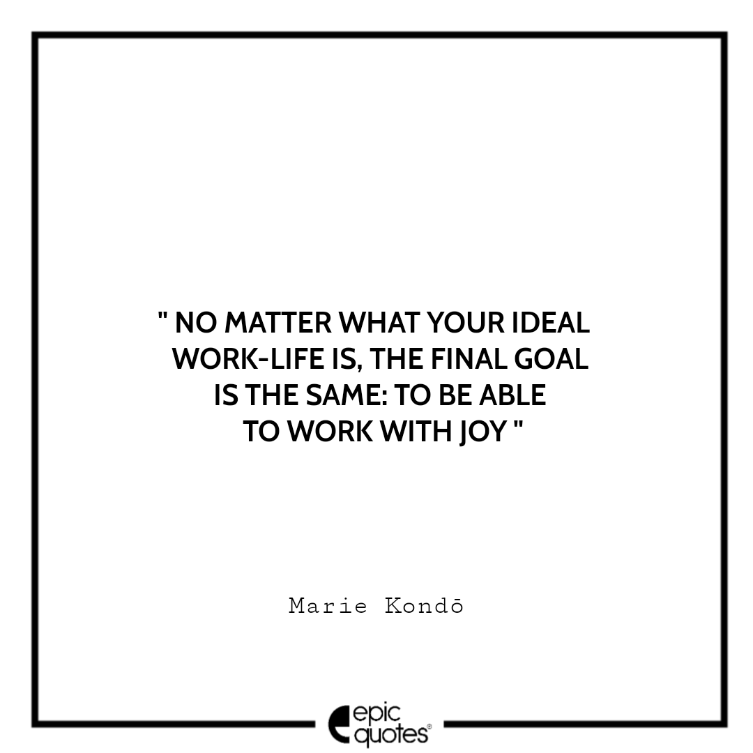 10. No matter what your ideal work-life is, the final goal is the same: to be able to work with joy. -Marie Kondō