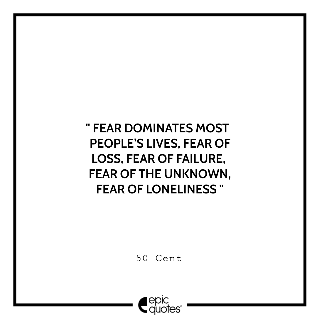 3 . Fear dominates most people’s lives, Fear of loss, Fear of failure, Fear of the unknown, Fear of loneliness. -50 Cent
