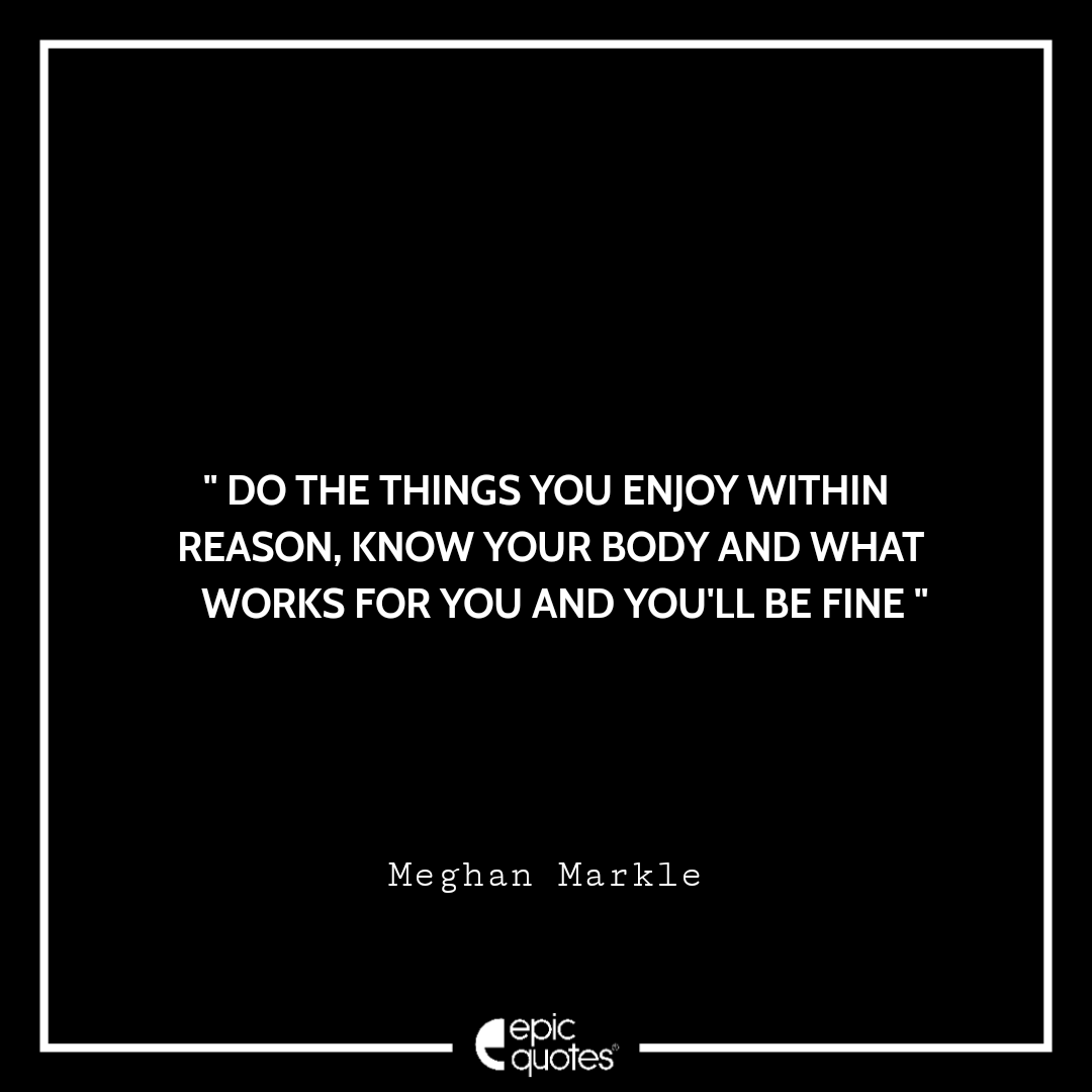 1 Do the things you enjoy within reason, Know your body and what works for you and you’ll be fine. -Meghan Markle