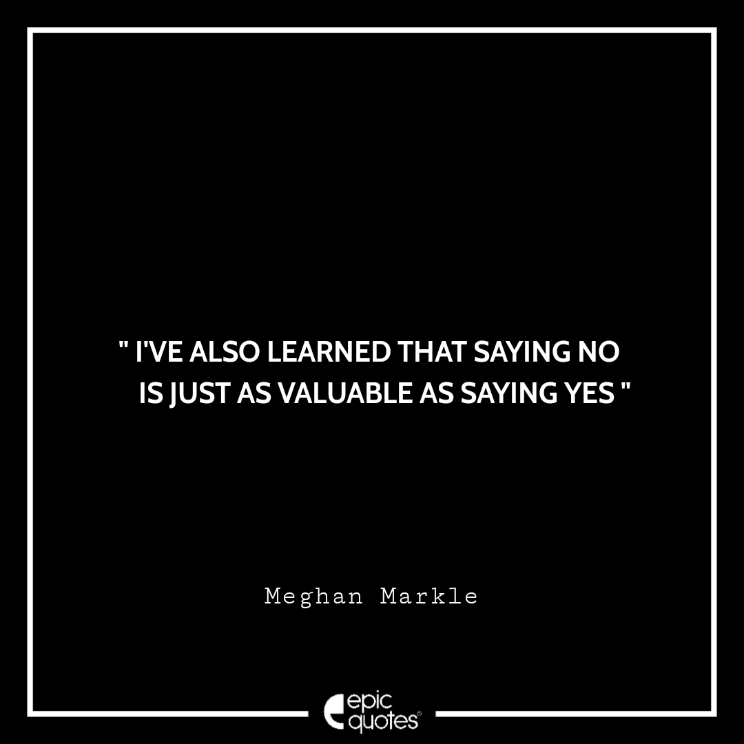 2 I’ve also learned that saying no is just as valuable as saying yes. -Meghan Markle