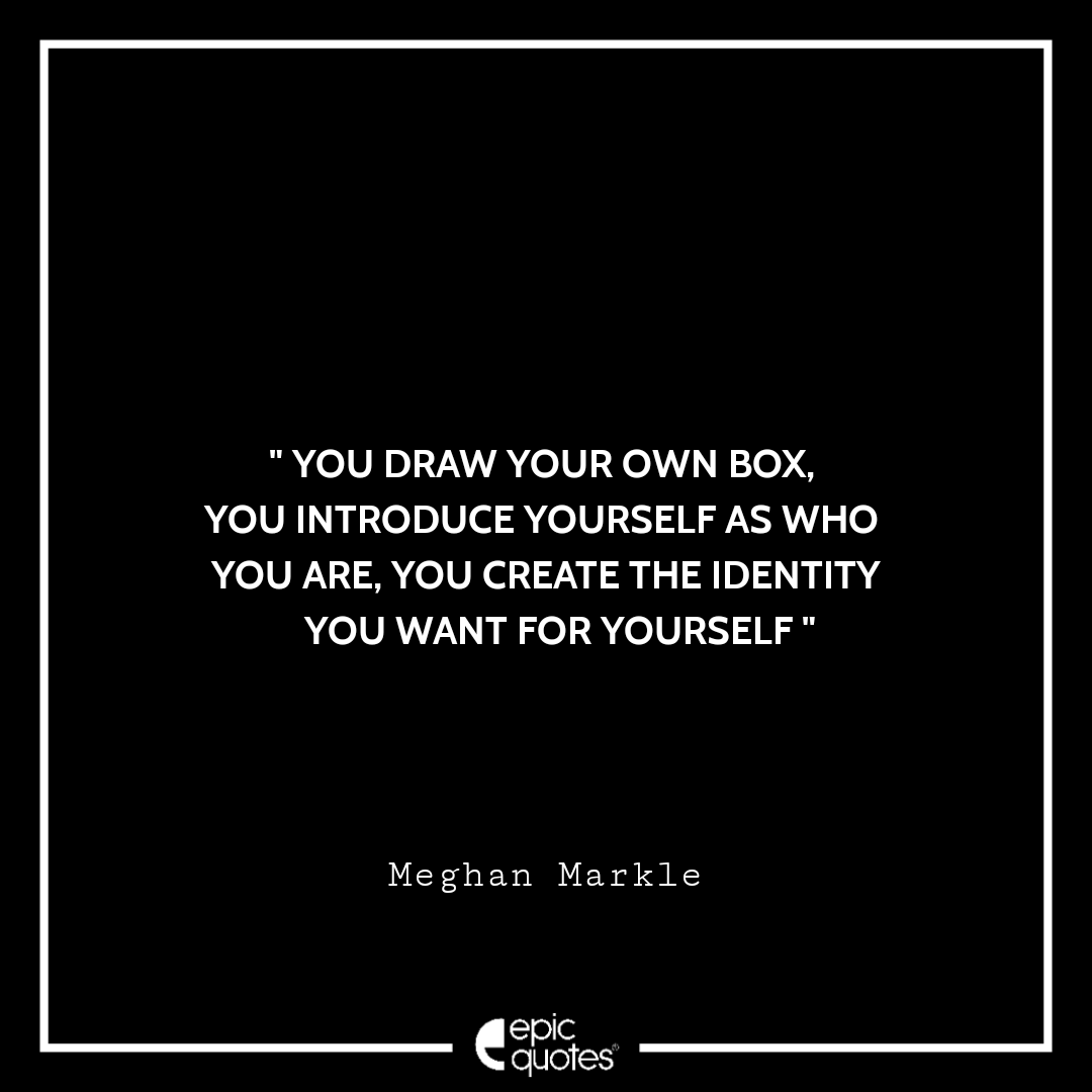7 You draw your own box, You introduce yourself as who you are, You create the identity you want for yourself. -Meghan Markle