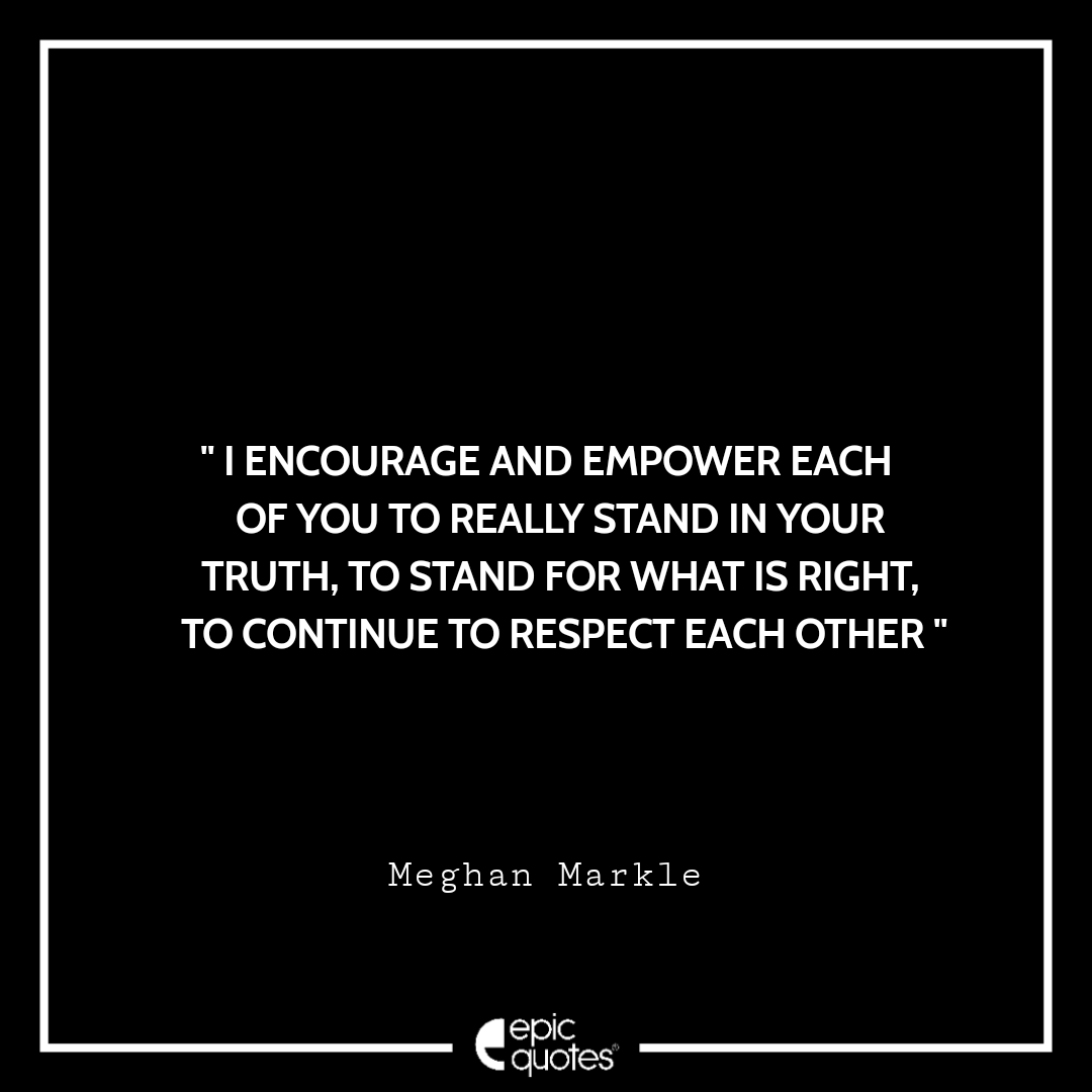 8 I encourage and empower each of you to really stand in your truth, to stand for what is right, to continue to respect each other. -Meghan Markle