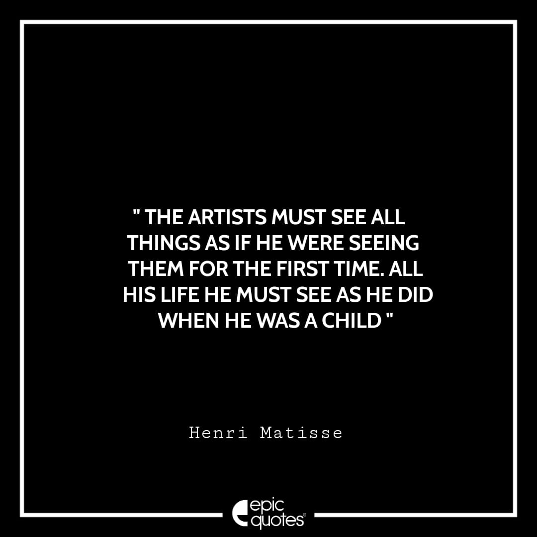 9 . The artists must see all things as if he were seeing them for the first time. All his life he must see as he did when he was a child. -Henri Matisse