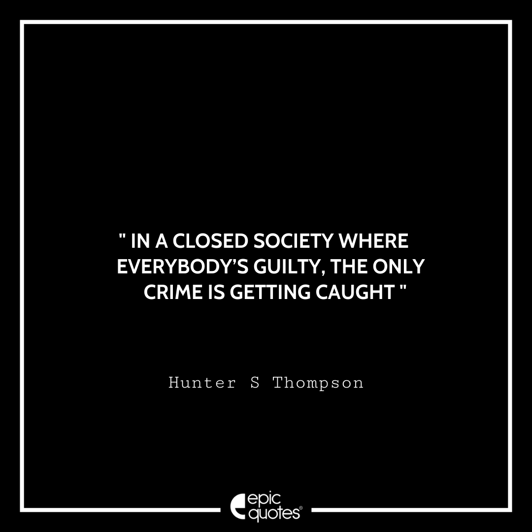 1 In a closed society where everybody’s guilty, the only crime is getting caught. -Hunter S Thompson