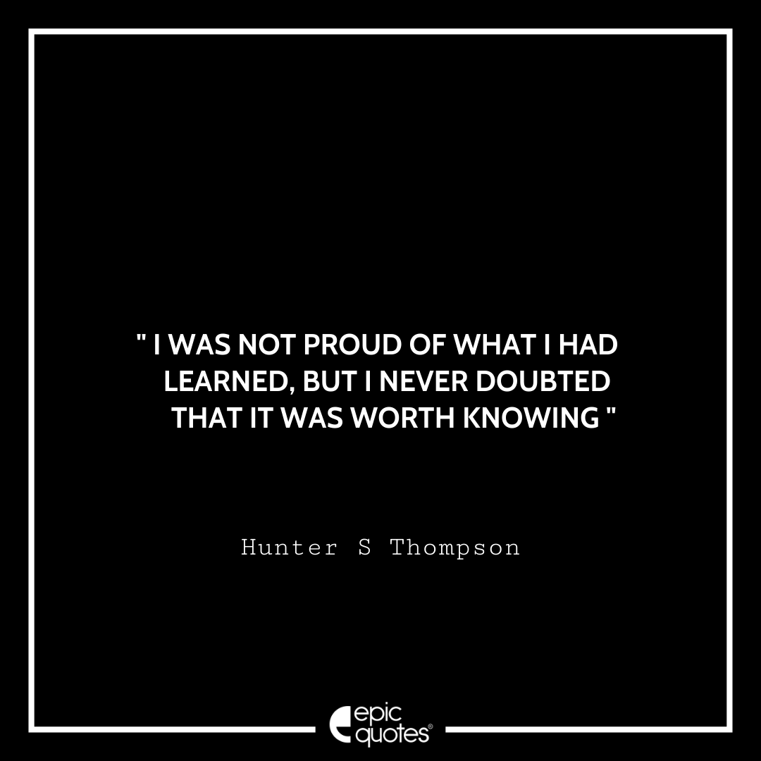2. I was not proud of what I had learned, but I never doubted that it was worth knowing. -Hunter S Thompson