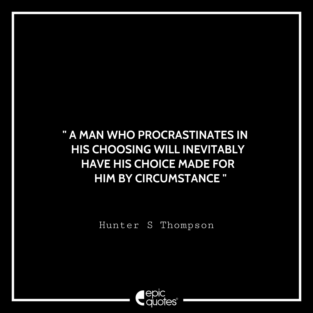 3. A man who procrastinates in his choosing will inevitably have his choice made for him by circumstance. -Hunter S Thompson