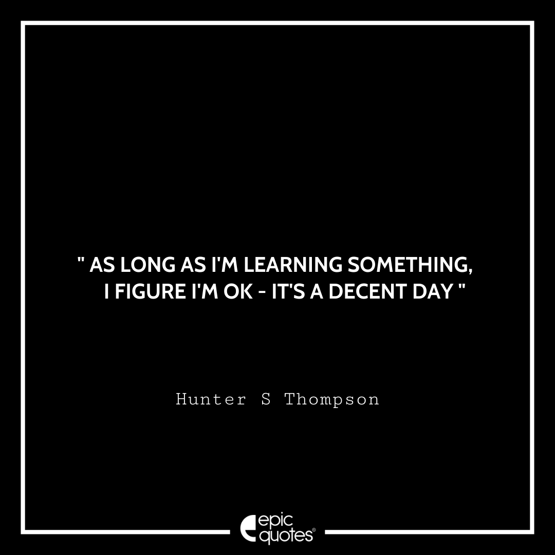 6 As long as I’m learning something, I figure I’m OK – it’s a decent day. -Hunter S Thompson