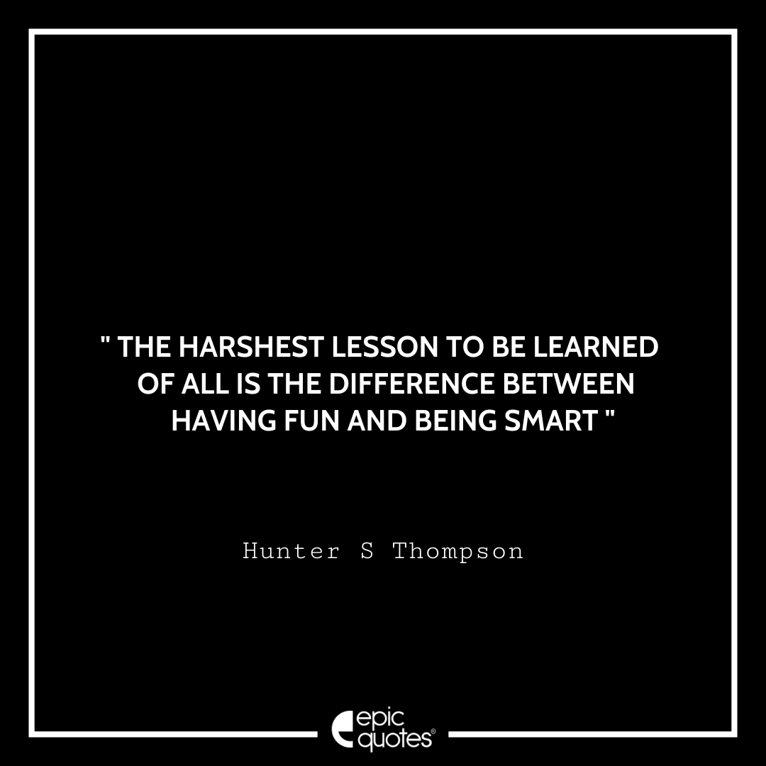 9. The harshest lesson to be learned of all is the difference between having fun and being smart. -Hunter S Thompson