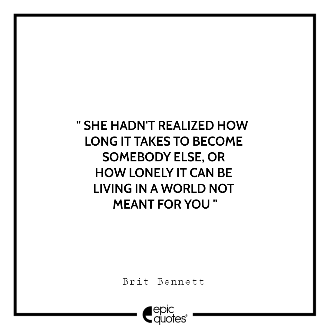 2 She hadn’t realized how long it takes to become somebody else, or how lonely it can be living in a world not meant for you. -Brit Bennett