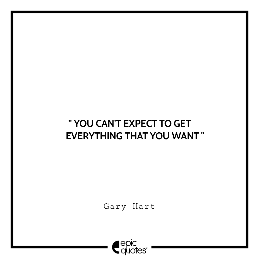 1 You can’t expect to get everything that you want. -Gary Hart