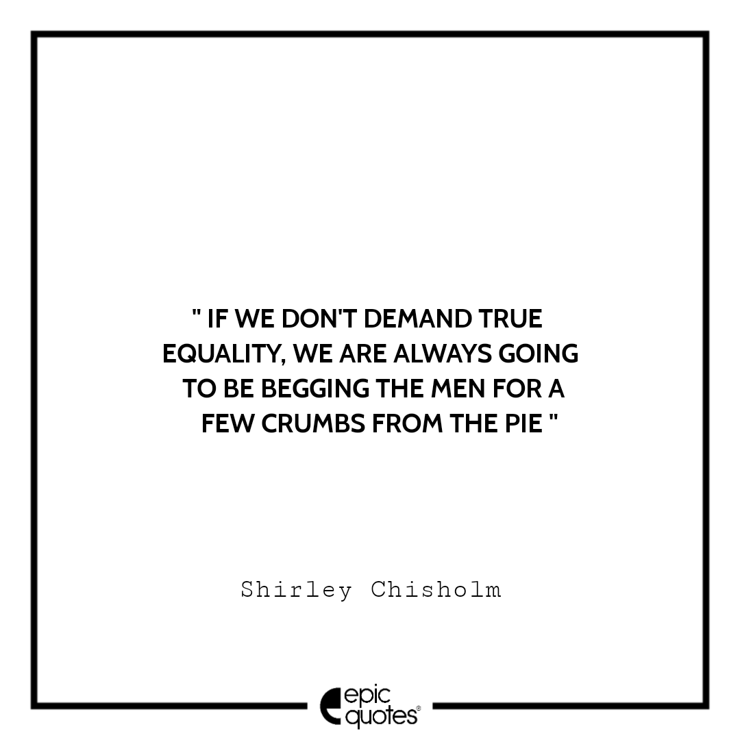 2. If we don’t demand true equality, we are always going to be begging the men for a few crumbs from the pie. -Shirley Chisholm