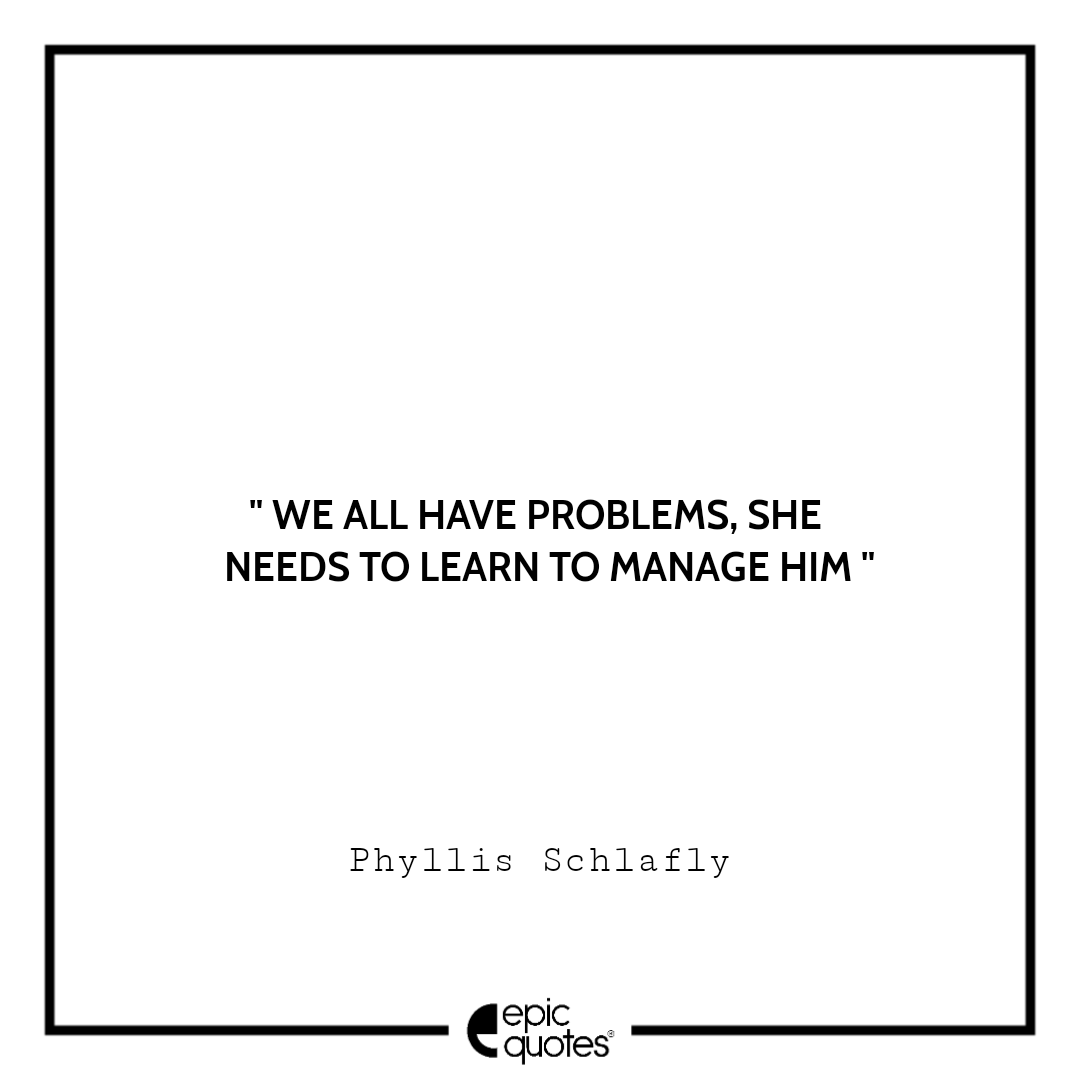 3 We all have problems, She needs to learn to manage him. -Phyllis Schlafly