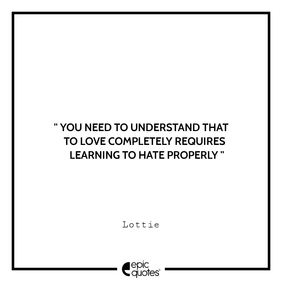 4 You need to understand that to love completely requires learning to hate properly. -Lottie