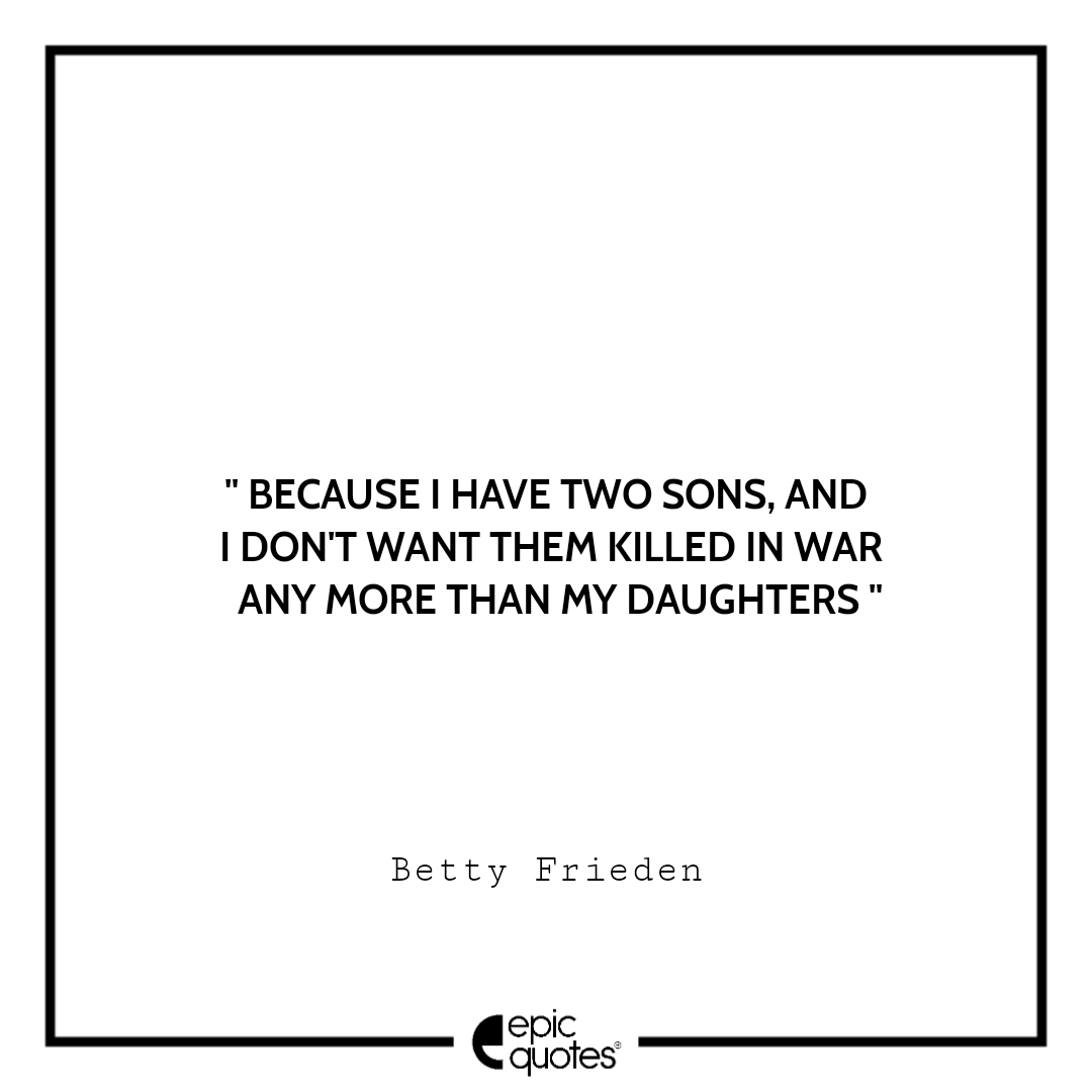 7 Because I Have Two Sons, And I Don’t Want Them Killed In War Any More Than My Daughters. -Betty Frieden