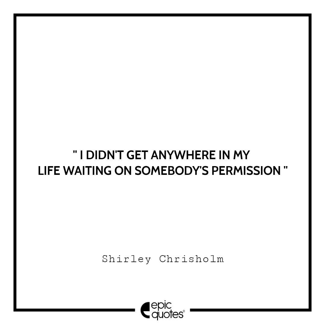 8. I Didn’t Get Anywhere In My Life Waiting On Somebody’s Permission. -Shirley Chrisholm