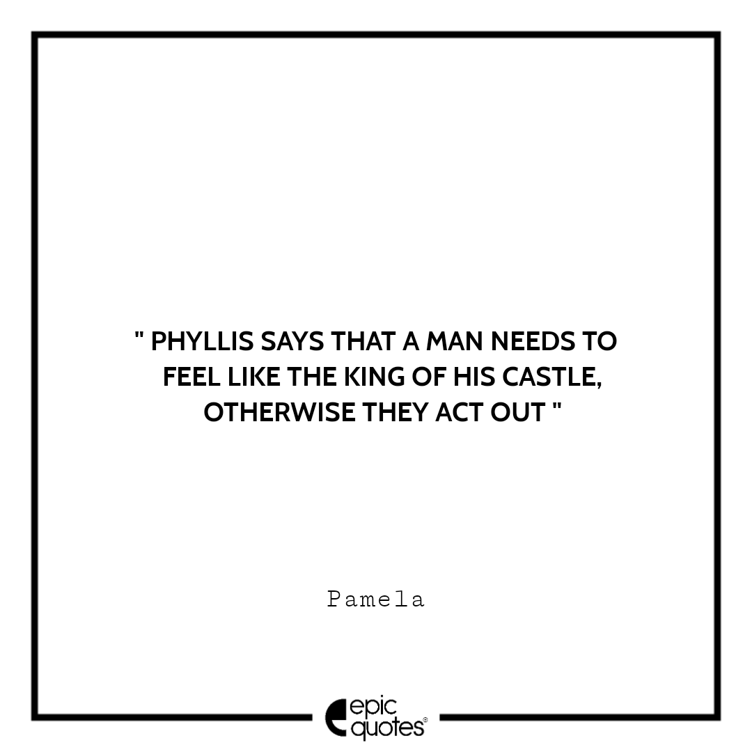 10 Phyllis says that a man needs to feel like the king of his castle, Otherwise they act out. -Pamela
