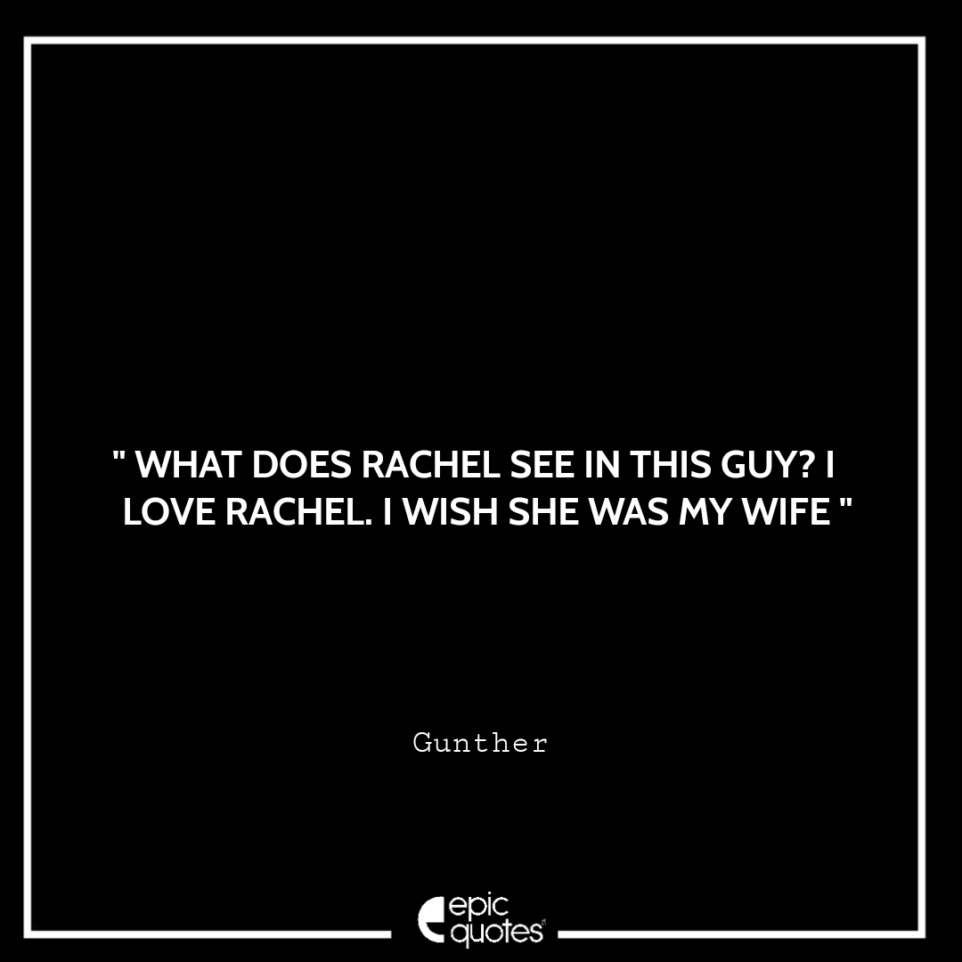 1. What does Rachel see in this guy? I love Rachel. I wish she was my wife. -Gunther
