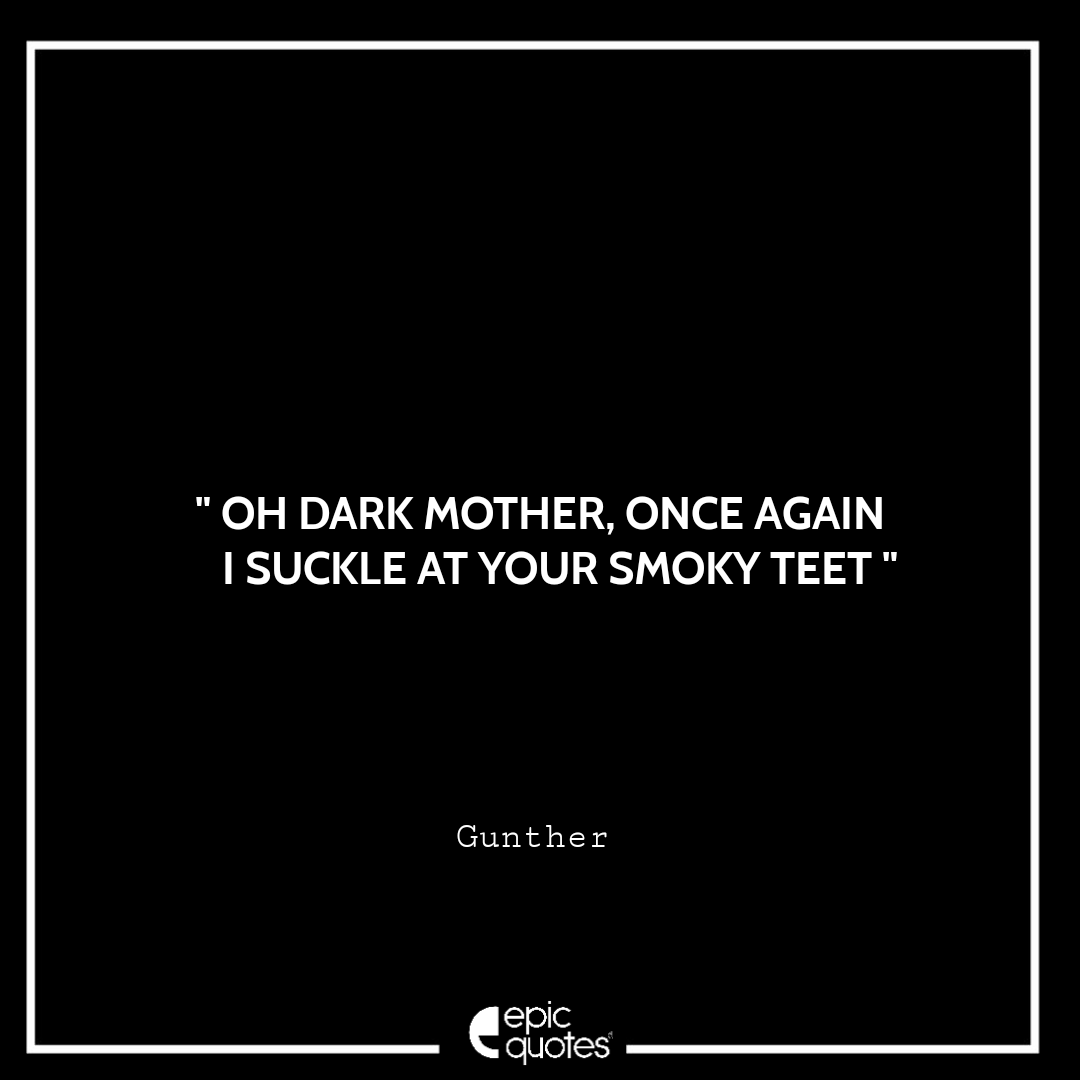 8. Oh dark mother, once again I suckle at your smoky teet. -Gunther