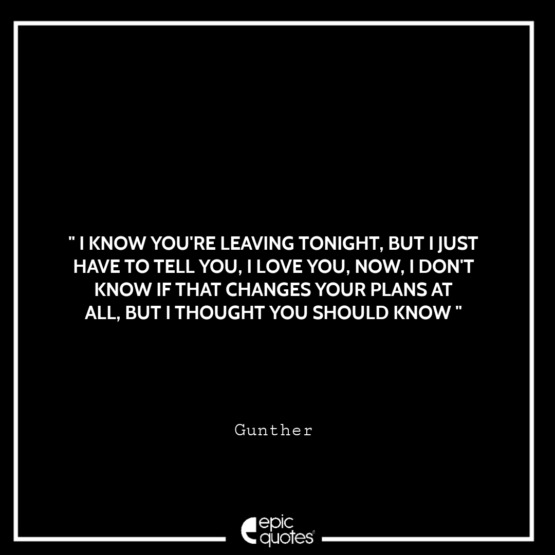 10 I know you’re leaving tonight, but I just have to tell you, I love you, Now, I don’t know if that changes your plans at all, but I thought you should know. -Gunther