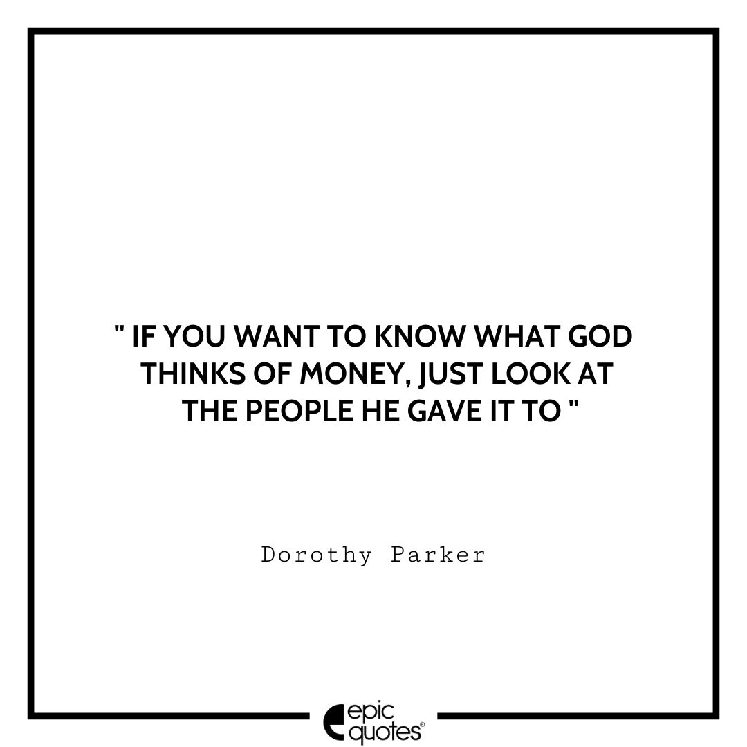 2 If you want to know what God thinks of money, just look at the people he gave it to. -Dorothy Parker