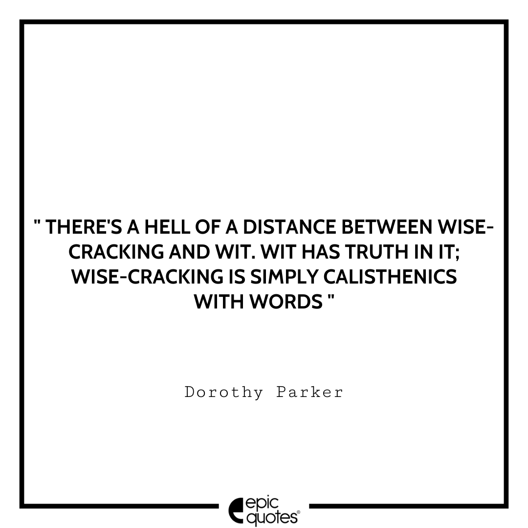 5. There’s a hell of a distance between wise-cracking and wit. Wit has truth in it; wise-cracking is simply calisthenics with words. -Dorothy Parker