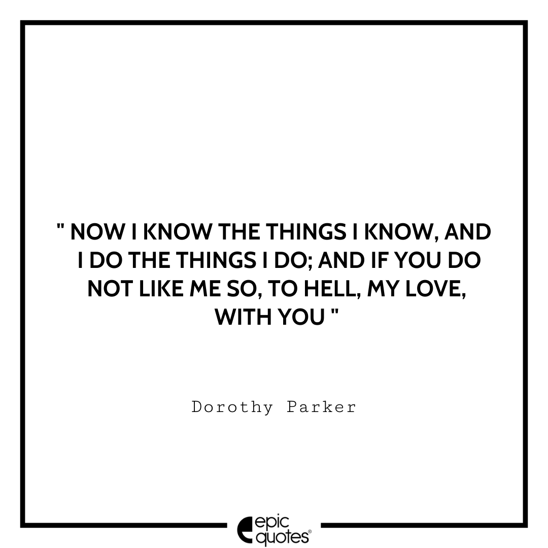 6 Now I know the things I know, and I do the things I do; and if you do not like me so, to hell, my love, with you -Dorothy Parker