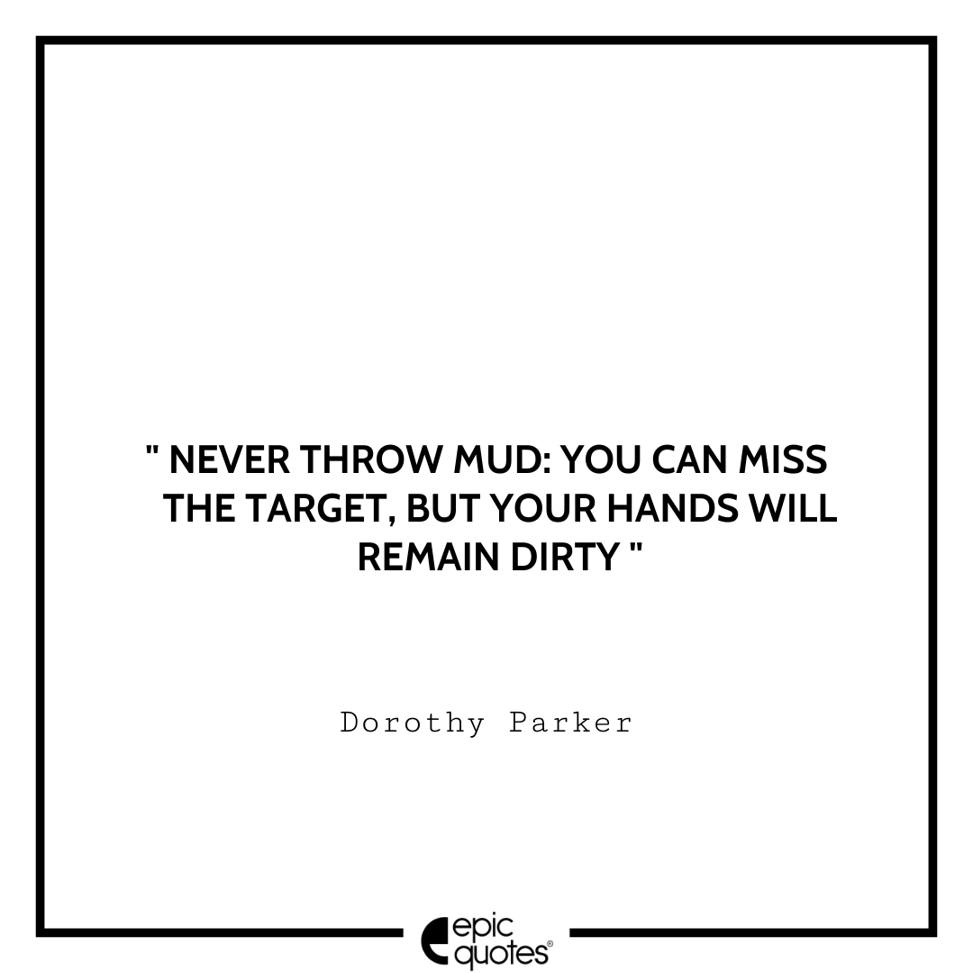 8. Never throw mud: you can miss the target, but your hands will remain dirty.- Dororthy Parker