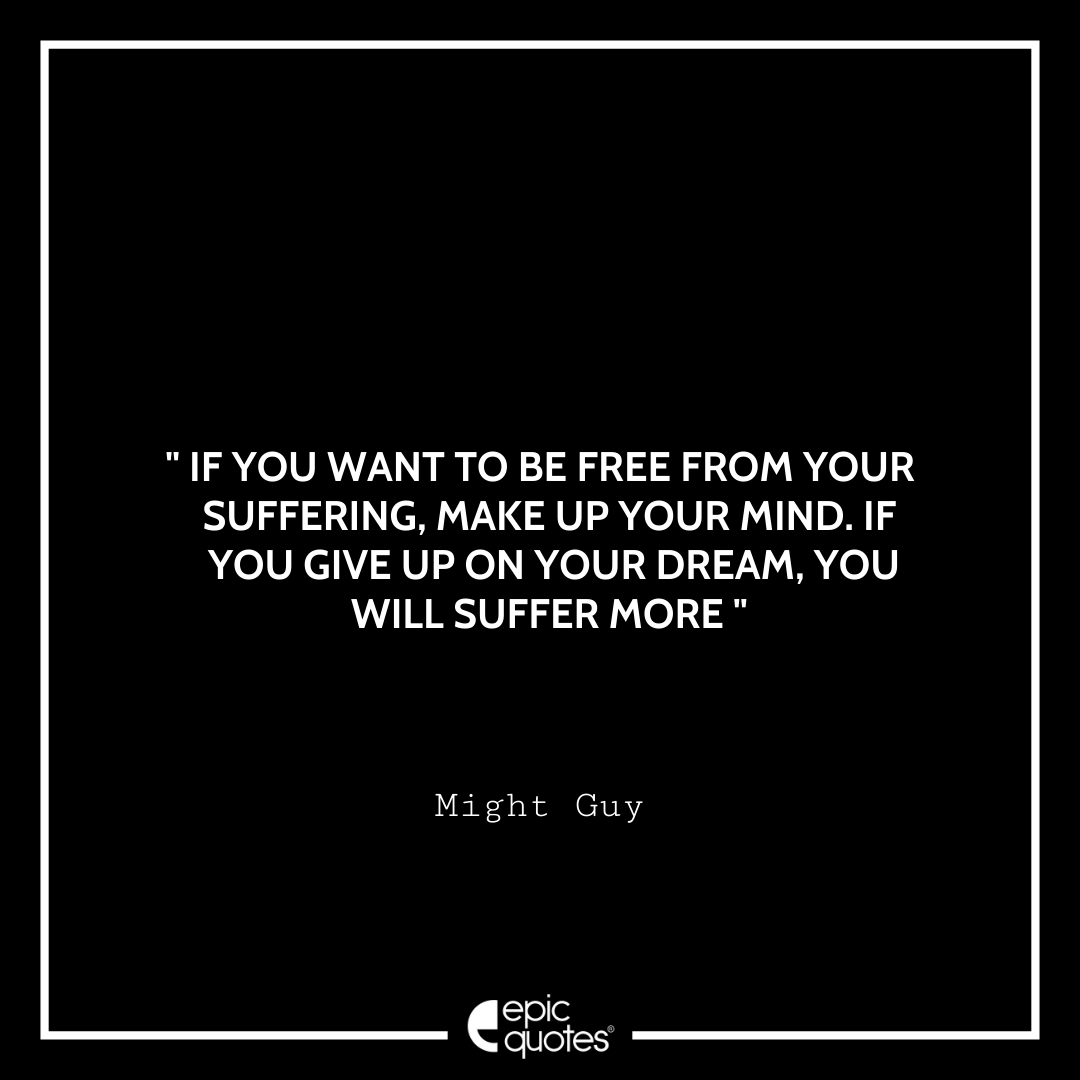 1 If you want to be free from your suffering, make up your mind. If you give up on your dream, you will suffer more. -Might Guy