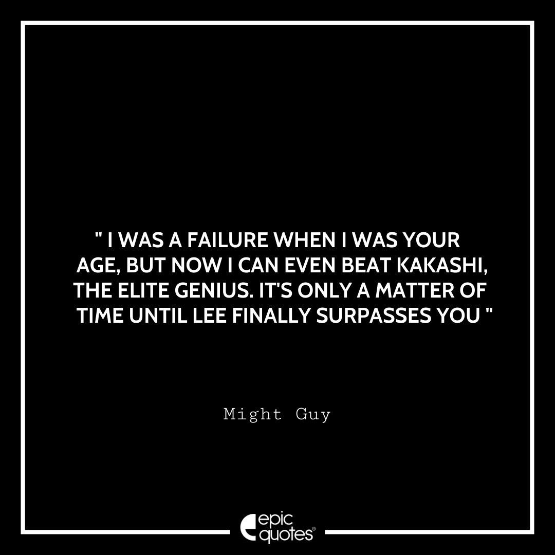 4 I was a failure when I was your age, but now I can even beat Kakashi, the elite genius. It’s only a matter of time until Lee finally surpasses you. -Might Guy