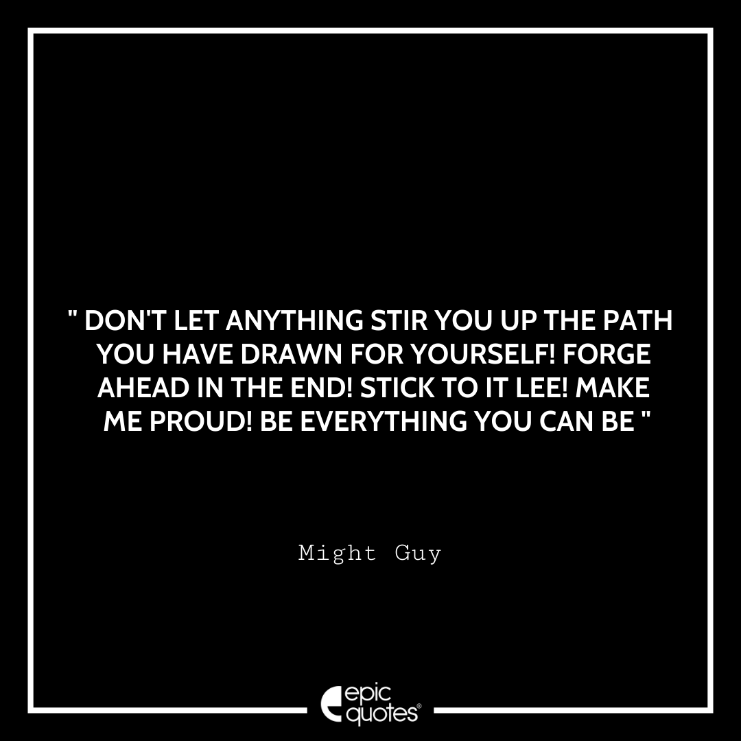 5 Don’t let anything stir you up the path you have drawn for yourself! Forge ahead in the end! Stick to it Lee! Make me proud! Be everything you can be. -Might Guy
