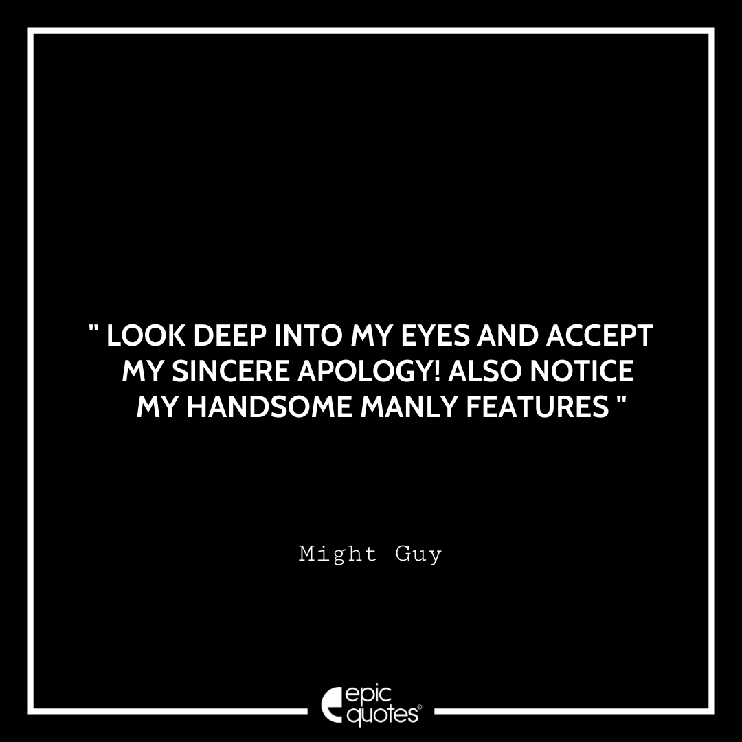 8. Look deep into my eyes and accept my sincere apology! Also notice my handsome manly features. -Might Guy
