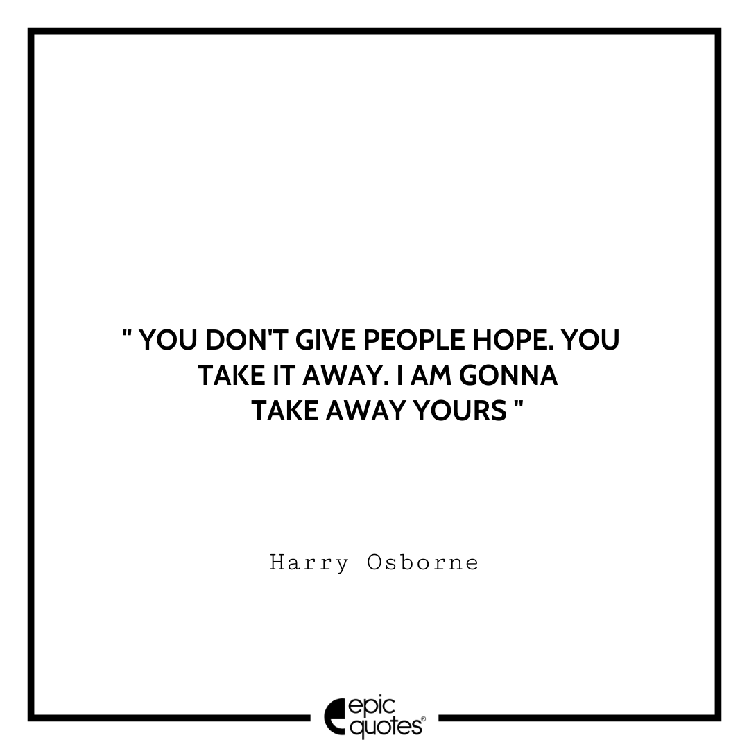 1 You don’t give people hope. You take it away. I am gonna take away yours. – Harry Osborne