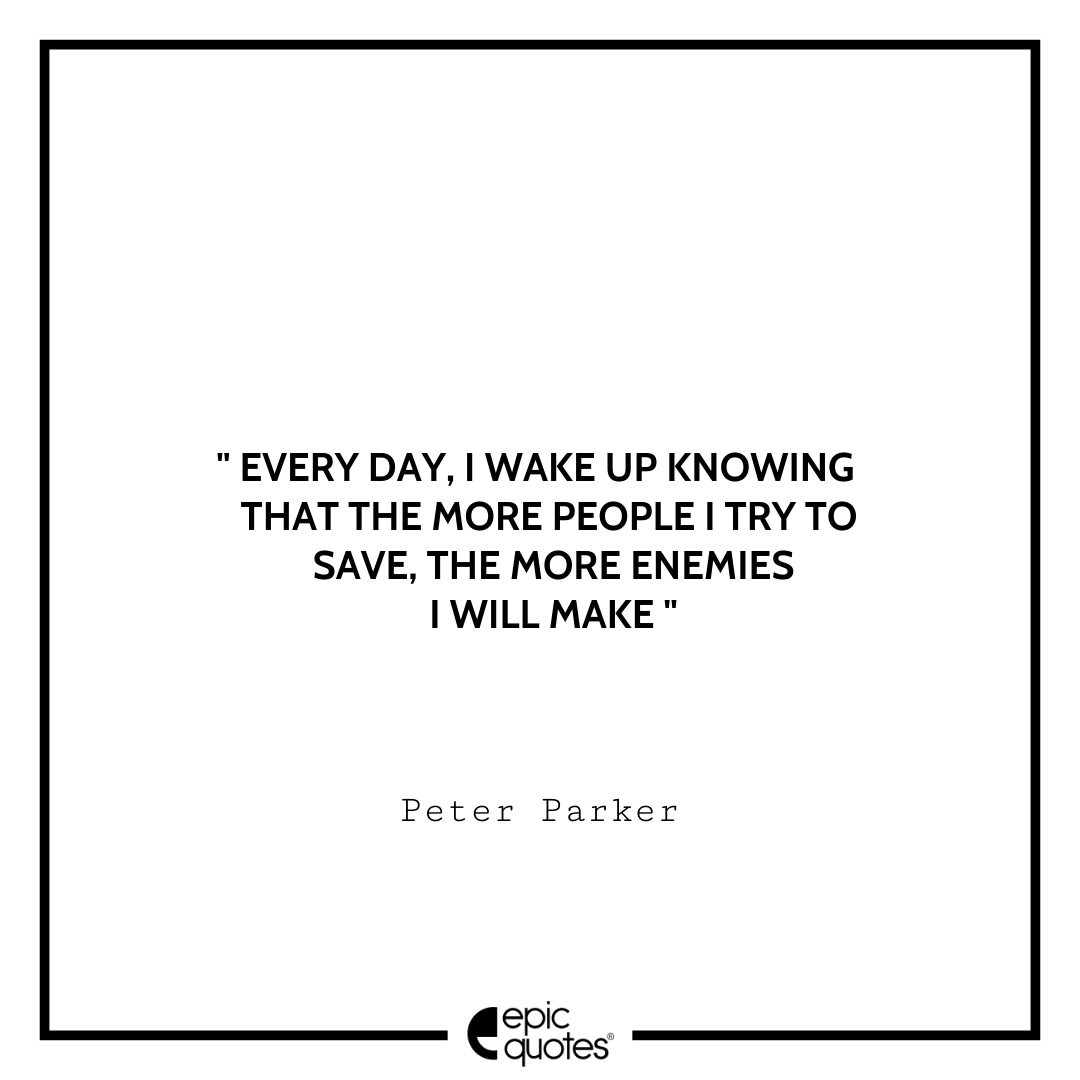4 Every day, I wake up knowing that the more people I try to save, the more enemies I will make. – Peter Parker