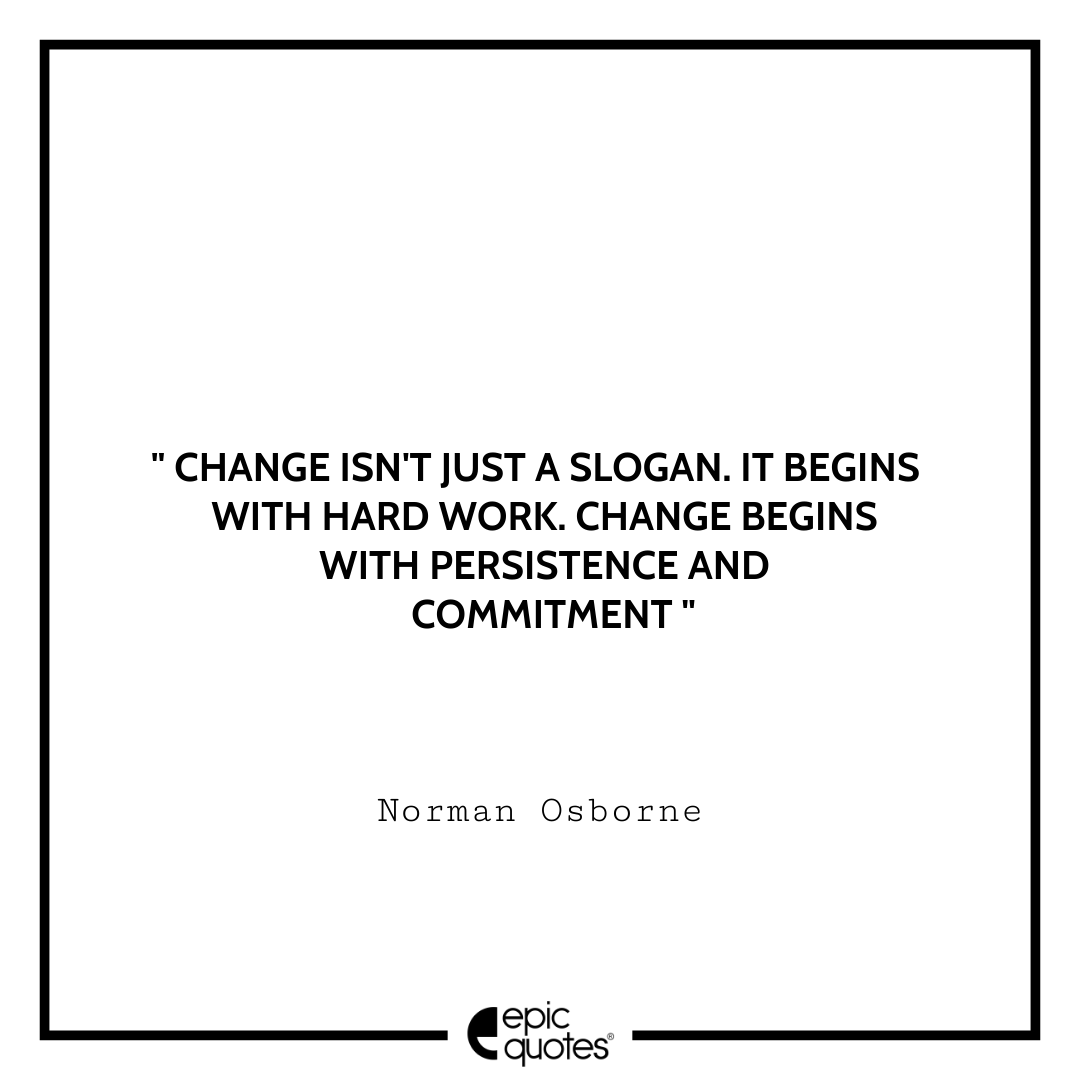8 Change isn’t just a slogan. It begins with hard work. Change begins with persistence and commitment. – Norman Osborne