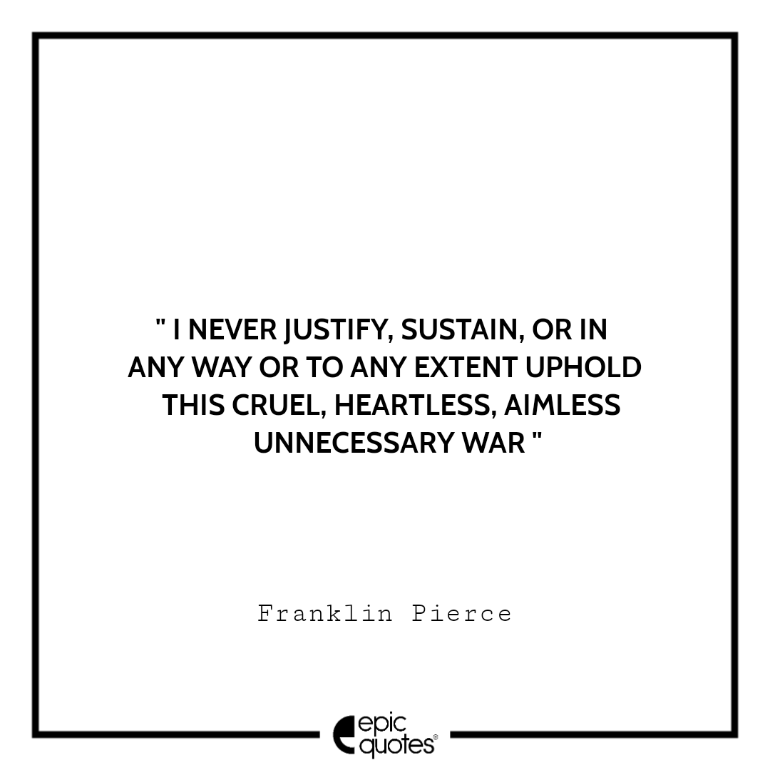 3 I never justify, sustain, or in any way or to any extent uphold this cruel, heartless, aimless unnecessary war. -Franklin Pierce