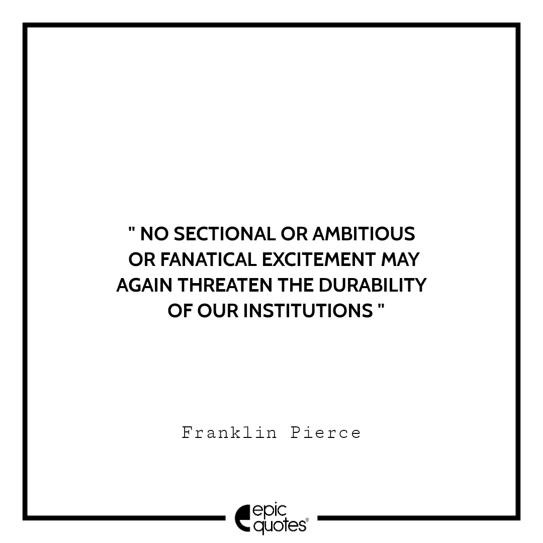 8 No sectional or ambitious or fanatical excitement may again threaten the durability of our institutions. -Franklin Pierce