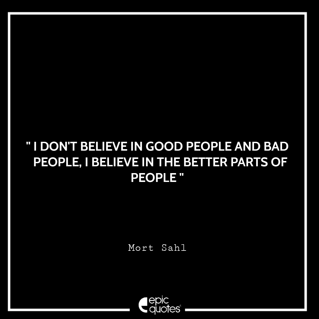 10 I don’t believe in good people and bad people, I believe in the better parts of people. -Mort Sahl
